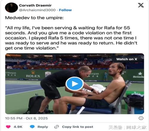 不過(guò),梅德韋杰夫再次卷入爭(zhēng)議,這一次是在2025年上海大師賽上,他因?qū)χ鞑美瓉喣岜l(fā)情緒而登上頭條。這位俄羅斯球員甚至在怒火中提到了已經(jīng)退役的納達(dá)爾,以此發(fā)泄對(duì)自己被判違規(guī)的不滿。