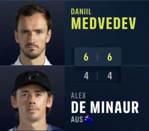 首盤第一局,“梅總”就完成破發(fā),隨后雙方各自保發(fā),局分來到5-4,在梅德維德夫關鍵的發(fā)球勝盤局上,他的發(fā)球出現(xiàn)波動,多次出現(xiàn)雙誤,好在德米納爾在接發(fā)球上也沒有太多辦法,梅德維德夫以6-4贏下首盤。